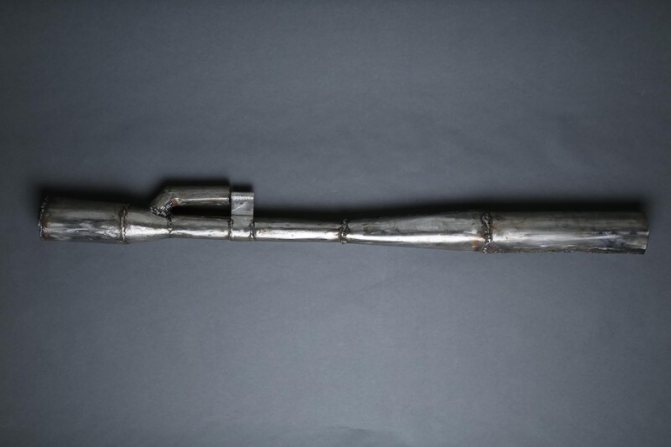 Материали: дебела метална тръба, електроди, свредла, 2 резбовани нипела, съединители.