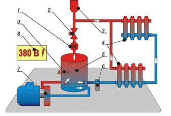 - Помпа - за отопление, не забравяйте да изберете термопомпа, която не се страхува от постоянно излагане на високи температури. Той трябва да осигурява работно налягане на изхода 4 - 12 атм.