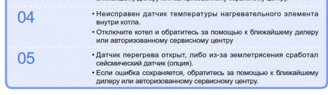 | 05 | Неизправност на сензора за прегряване на котела | Обадете се на майстора |