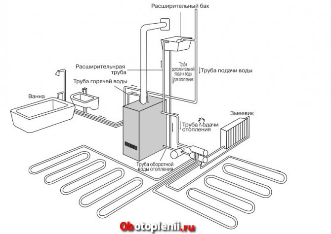 - Двойна верига... Успоредно с нагряването на охлаждащата течност, те могат да нагряват топла вода за битови нужди по течащ начин.