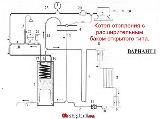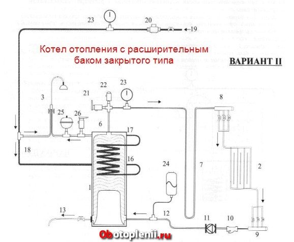 - Разширителният резервоар на котела е монтиран на височина повече от един метър от горната част на котела;