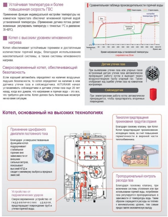 Нека разгледаме характеристиките на котлите Kiturami, като използваме примера на дизеловия котел Kiturami Turbo.