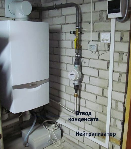 Ако котелът е инсталиран в къща с септична яма или VOC, тогава кондензатът трябва първо да бъде неутрализиран. В противен случай ще унищожи цялата микрофлора в автономна система за пречистване.