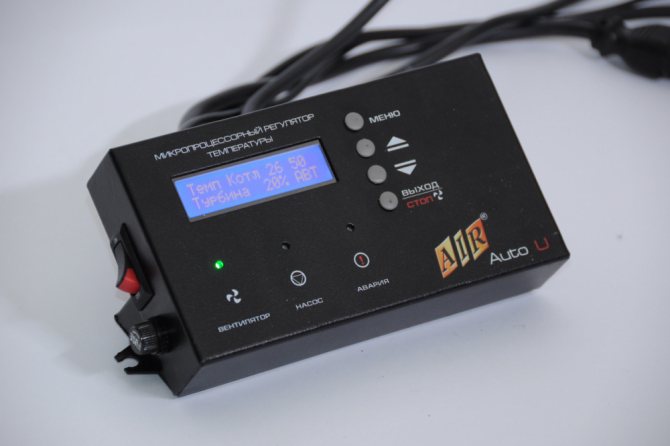 Контролерът е безпроблемен, по-опростен модел, оборудван само със стандартни функции: контрол на скоростта на вентилатора на вентилатора, контрол на циркулационната помпа, LED индикация за работата на елементите. Монтаж на външни сензори и системи за автоматично подаване също не е предвидено. Отличен избор, но на цена, сравнима с по-функционалните модели. Вентилаторът е най-често срещаният модел, описан по-горе.