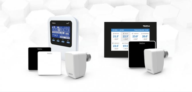 - осигурява се съвместна работа на контролера TECH ST-48 с двупозиционен стаен термостат или термостат с RS комуникация;