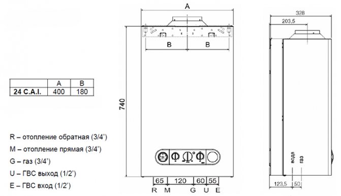 - Типът горивна камера е атмосферен и с турбокомпресор. Първите имат буквата "А" в маркировката, вторите - "S".