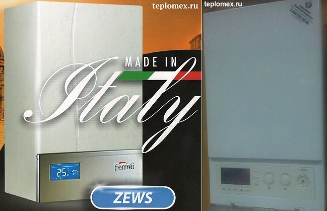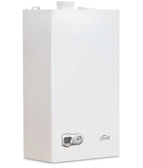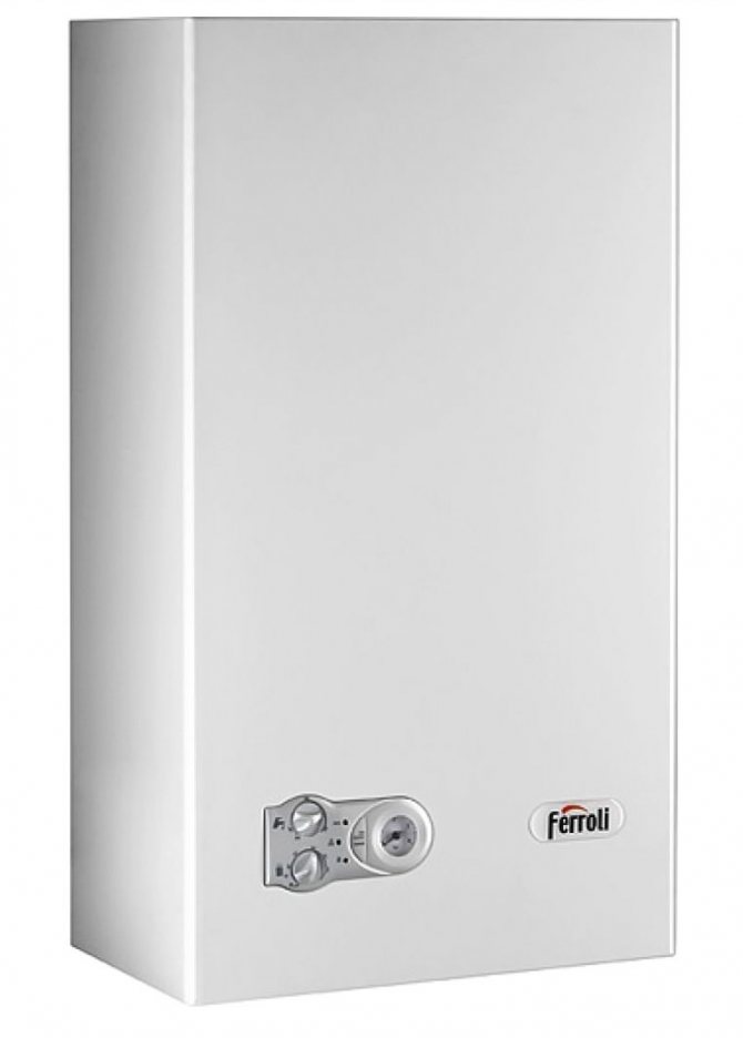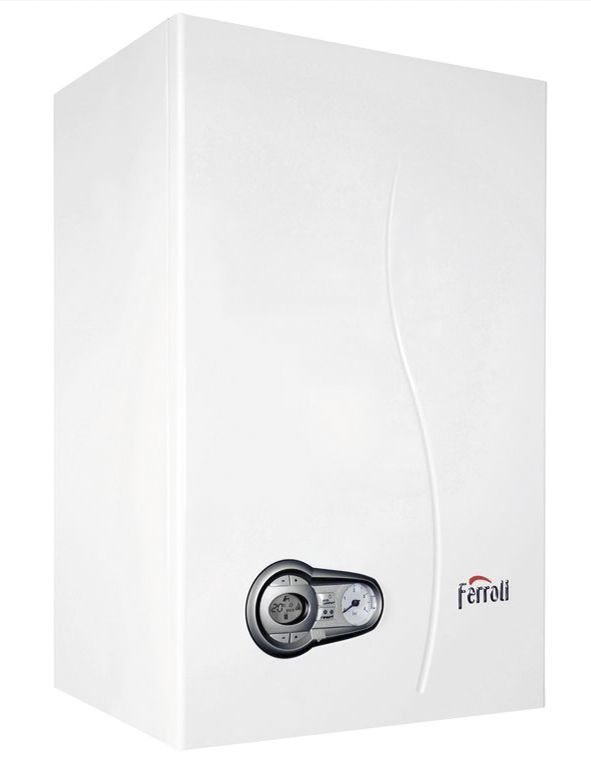 - Ferroli DomiTech Представлява монтирано на стена устройство с два кръга, с вградена функция за моментно нагряване на водата. Контролът върху работата на продукта се осъществява чрез цифрова система за управление. Устройството включва меден топлообменник. Той се счита за най-ефективен и може да работи успешно в продължение на десет години.