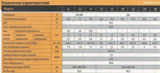 Напречното сечение на кабела може да бъде различно, в зависимост от мощността на избрания модел: 4, 6, 10 mm2. Всички технически характеристики са описани по-подробно в таблицата.