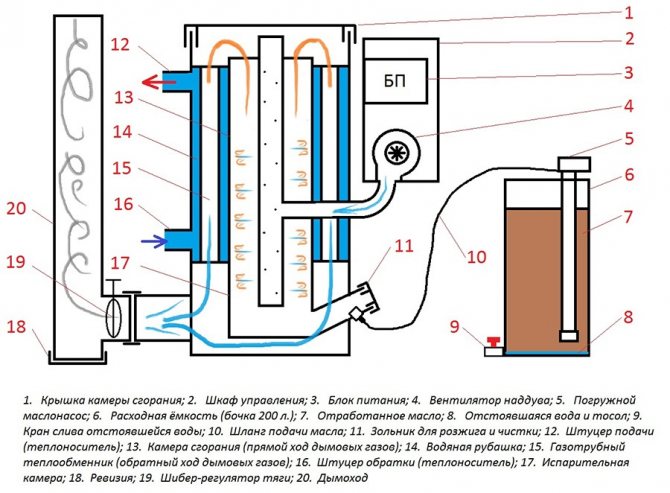 Наложително е да се вземе предвид при сглобяването на такъв котел, че всяка система, която работи с отработено масло, трябва да бъде оборудвана с отоплителна система.