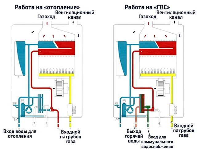 - двуконтурен - отговорен както за отоплението, така и за подаването на топла вода (БГВ).