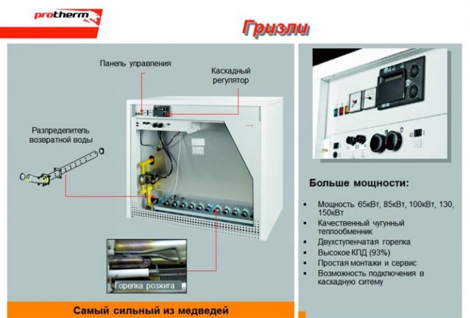 - Гризли. Поредица от устройства с увеличена мощност от 65 на 150 kW. Те се използват в големи жилищни сгради, могат да бъдат инсталирани в магазини или обществени сгради.