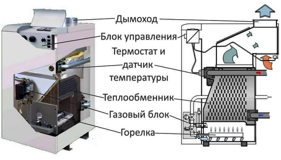 Между отоплителната камера и стените на котела има отвор, през който димните газове навлизат в топлообменната кухина.