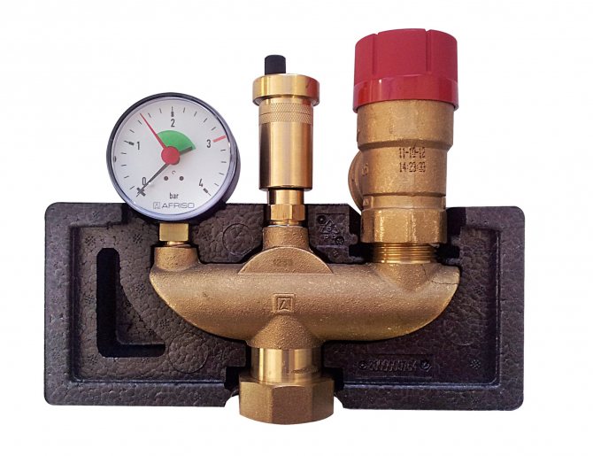 - Предпазен клапан. Свързан с връщащата тръба. Извършва аварийно изпускане на вода, когато налягането се повиши над зададената скорост.