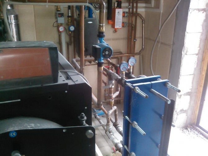 Общото тегло на оборудването съгласно тази схема има голяма стойност, която трябва да се вземе предвид при изчисляване на натоварването на пода на котелното помещение.