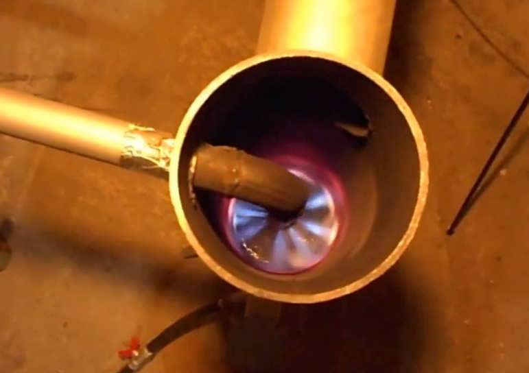 След изливането на сместа, както и запалването на пламъка, е необходимо да включите вентилатора, който ще издухва въздух. Вентилаторът допълнително духа върху горещата повърхност отвътре. В такава система би било подходящо да се направи автоматично подаване на гориво.