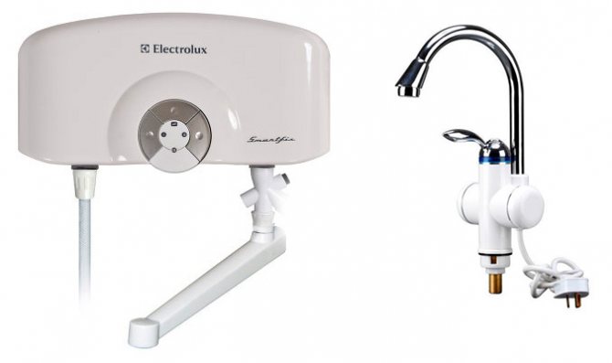 Много е удобно да инсталирате 3-киловат евтин нагревател на кран върху кухненската мивка и да го използвате, за да получите вода с приемлива температура за изплакване на плочите. Същото важи и за мивката за баня за миене на ръце, но заедно те могат да работят само в 32-амперна 220 V мрежа.