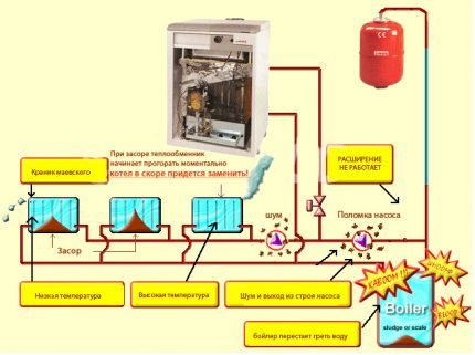 За нормалната функционалност на отоплителната система нищо не трябва да пречи на движението на охлаждащата течност през изградените за нея канали.