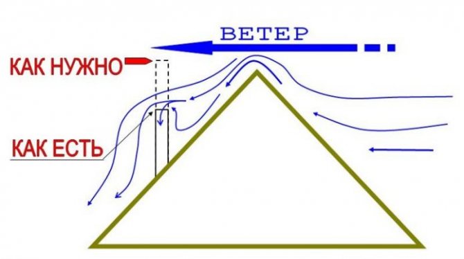 Обратната тяга се причинява от вятър, духащ през неправилно монтиран комин