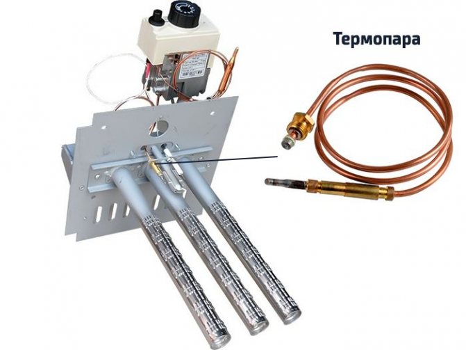 Термодвойка следи управлението на пламъка в камината на газов котел.Възелът е свързан към електрическа верига, където има електромагнит, свързващ контакти. Ако някой от блоковете се повреди, газовият котел AOGV изгасва при изгаряне.