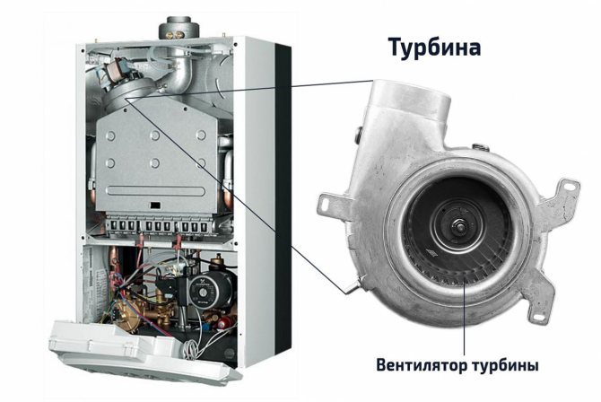 Предимството на турбинните устройства е постоянната тяга, осигурявана от турбокомпресора. Изпускателният вентилатор е отговорен за отстраняването на продуктите от горенето. Ако уредът не успее, тягата изчезва. Горелката, заедно с запалителя, незабавно изгасва.