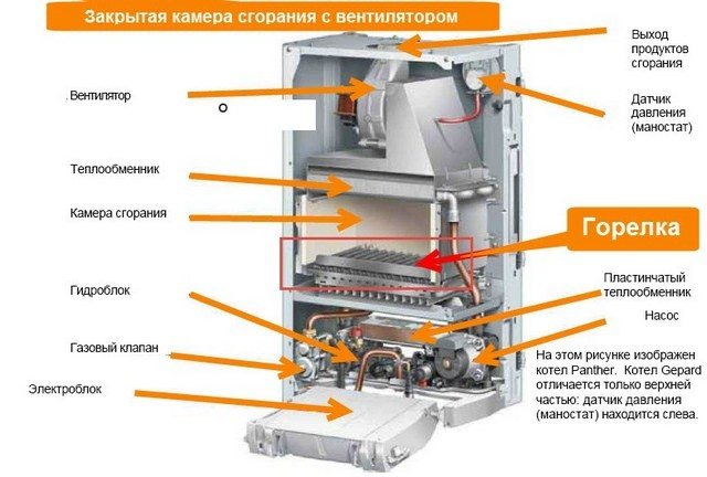Устройството на газов котел с горелка.