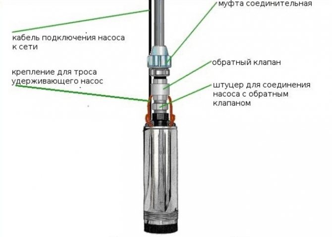 - На изхода на потопяема помпа, спусната в кладенец или в кладенец. Когато помпата е изключена, водата няма да се върне в обратна посока; Инсталиране на възвратен клапан на потопяема помпа