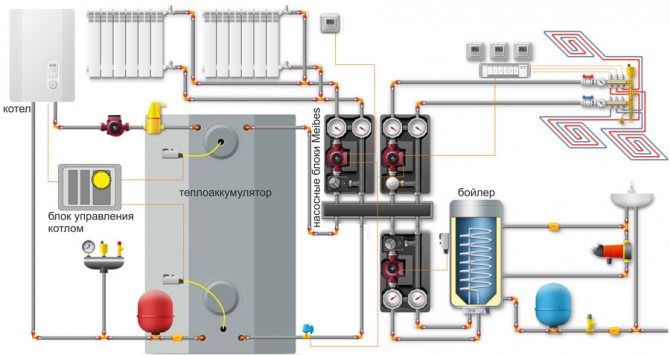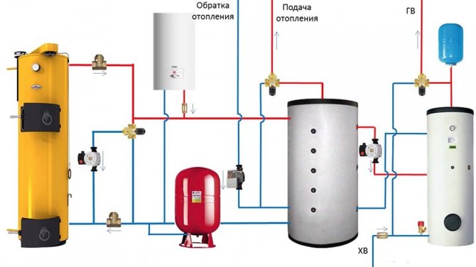 Внимание! Наличието на акумулаторен резервоар в отоплителната система позволява да се поддържа температурата на въздуха на едно и също ниво в помещението.