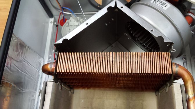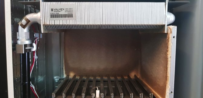 е оребрена тръба, вторичната е набор от плочи. Модулите са свързани помежду си, но са разположени в различни части на устройството: първичен - отгоре, плоча - отдолу.