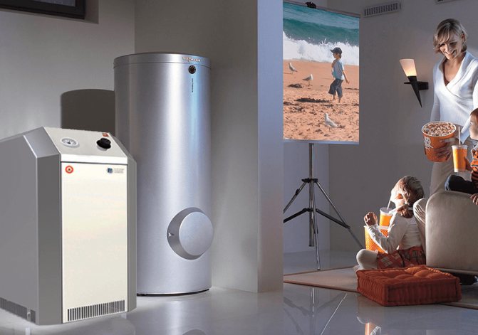 Малко метално тяло на такова оборудване съдържа горелка, циркулационни помпи в размер на една или две части, разширителен резервоар, система за сигурност, контролно устройство или топлообменници, термометър и манометър.