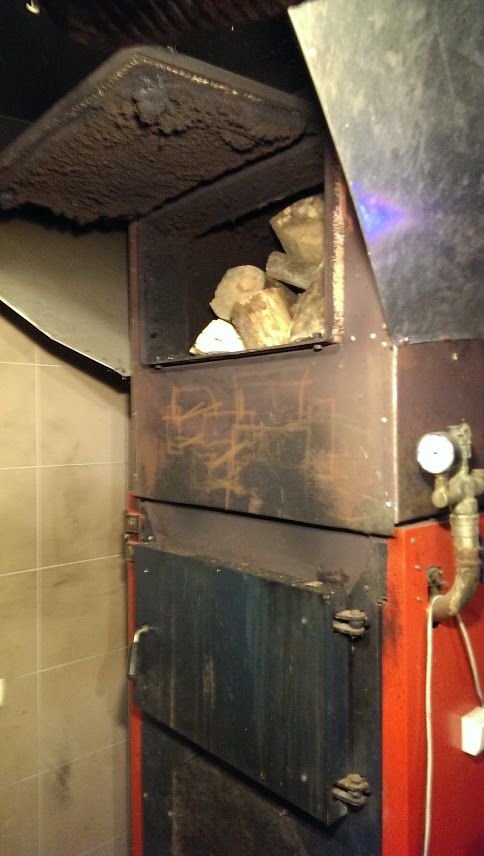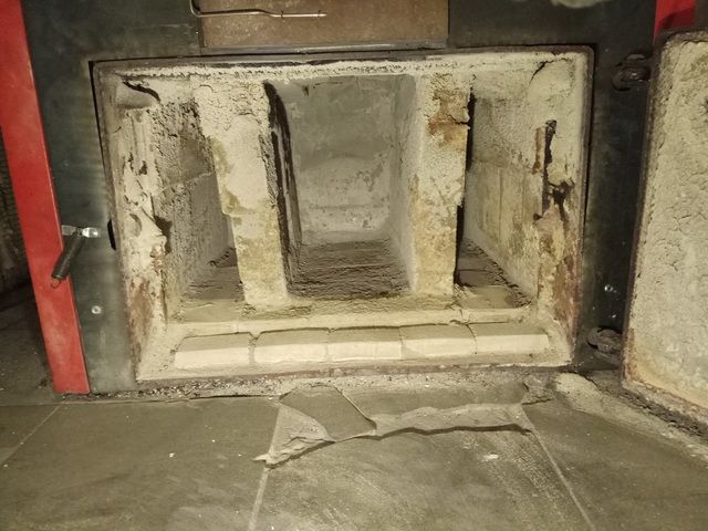 Пиролизната камера на котела (известна още като пепел) трябва да се почиства всеки път след цикъла на нагряване (около 10 - 12 часа непрекъсната работа), тъй като нейният обем е ограничен, а пиролизните газове все още трябва да изгорят някъде.