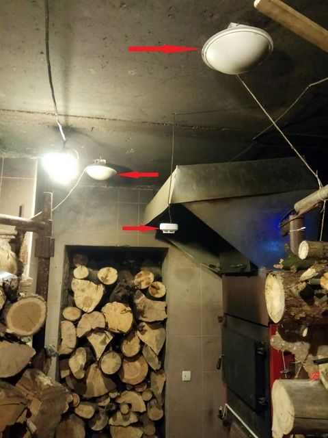 За да осигуря пожарна безопасност в котелното, на неговия таван поставих два автоматични прахови пожарогасители от типа Buran 2.5 и автономен детектор за дим.