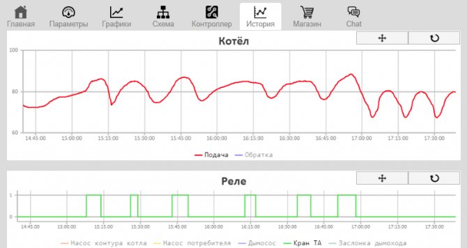 По този начин графиките в раздела "История" позволяват да се анализира работата на цялата система през изминалите периоди и да се предскаже следващото стартиране на TTK в съответствие с нуждите на жителите на къщата. Освен това подобен поглед отвън дава представа за по-нататъшното подобряване на отоплителната система.