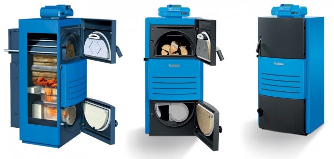 - BUDERUS - премиум клас (Германия). Такива котли имат и редица предимства, по-специално ефективността им е 88-90%, докато мощността им варира в рамките на 20-40 kW. Работното налягане тук е същото като в предишните аналози - 3 бара. Температурният индикатор на захранването е 95 градуса, а връщането е 55 градуса. Но в този котел можете да използвате 10 см по-дълги трупи. Такива котли могат да бъдат направени от чугун или стомана. Може би една от най-приятните характеристики на моделите BUDERUS е естетическият външен вид, тъй като не всеки има възможност да скрие котела от погледа.