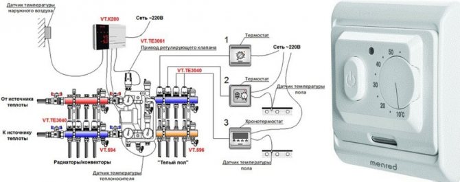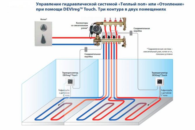 Ако в някои помещения има под с водно отопление, който може да се захранва от същия газов котел, е необходим малко по-различен тип термостат. Той трябва да бъде свързан към сервосистемите на колектора.