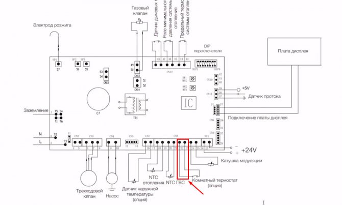 Когато термостатът е свързан, фабричният джъмпер се демонтира и на негово място се поставя кабел, положен до мястото, където е монтиран термостатът. Най-важното е, че не е необходимо да променяте каквито и да било вътрешни настройки на котела.