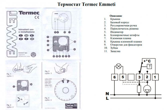 Между другото, за газов котел можете да използвате друг по-прост тип регулатор, който дори не трябва да се захранва с напрежение 220V. Например механичен термостат Termec Emmeti или други подобни модели.