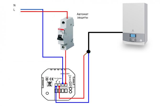 При регулатор със сухи контакти няма значение къде да започне фазата или нулата, но при модели за електрическо подово отопление това играе съществена роля по въпроса за експлоатационната безопасност.