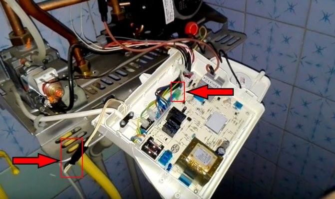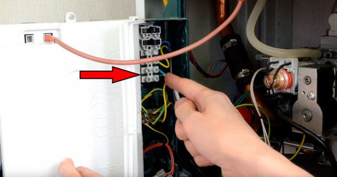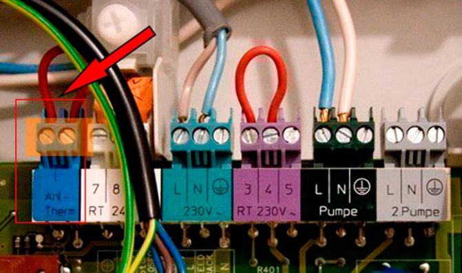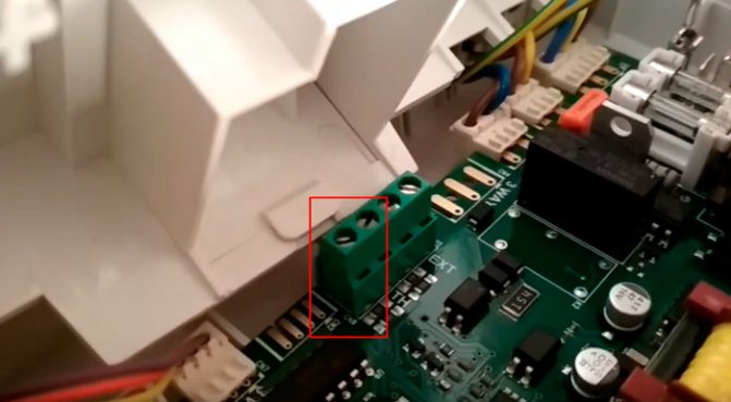 Намираме това място в котела и отстраняваме фабричния джъмпер, след което свързваме проводниците на термостата - в това няма нищо сложно.
