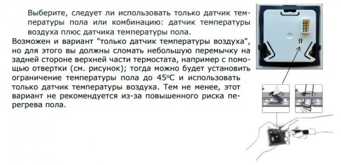 Следователно в настройките ще трябва да развържете датчика на пода и да оставите в действие само въздушния сензор. Как да направите това, прочетете подробно инструкциите за вашия модел. Различните устройства могат да се различават.