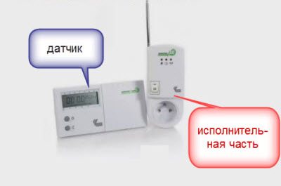 - състоящ се от изпълнителна част, която се намира до котела, и сензор, разположен в помещението, където е необходимо да се поддържа определена температура.