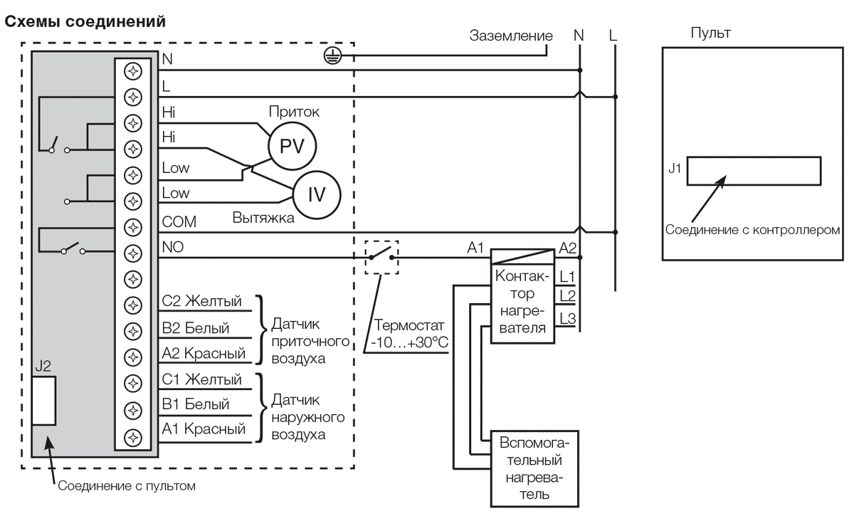 - Контрол на температурата на нагряване на отделен елемент от вентилационната система.