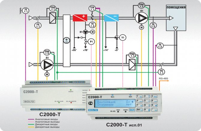 - поддържане на температурата на въздуха в обслужваните помещения в границите, определени от програмата на контролера;