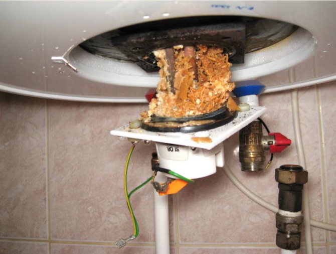 - ако котелът не се предотврати веднъж годишно, тогава по стените и на нагревателния елемент се образува котлен камък, което нарушава работата на нагревателния елемент и води до преждевременно износване на самия котел. Необходимо е също така да се сменя магнезиевият анод веднъж годишно, за да се предотврати корозията на стените.;