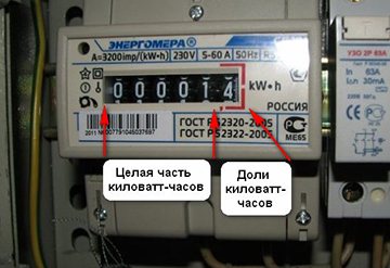 - В апартамента: за да изчислите правилно консумацията на електроенергия, трябва да знаете само две числа: показанията на измервателните уреди в началото на месеца и в края. За целта в дисплея на брояча те пренаписват всички числа, които са до десетичната запетая. Дроби обикновено не се броят, защото са твърде малки. Изваждайки първото от второто, получаваме консумираната електроенергия за месеца. Сумата ще бъде изразена в kWh.