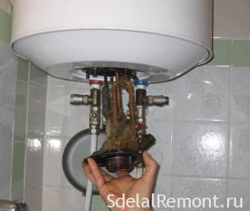 Ефективното промиване на котлите е възможно само чрез пълно отстраняване на фланеца, върху който са закрепени нагревателните елементи. Различните производители могат да използват различен брой монтажни болтове, но всички те използват дистанционер. Тя може да бъде гумена или силиконова. Когато фланецът се отстрани, те се наблюдават внимателно, за да не причинят механични повреди на тази част. В противен случай по време на сглобяването ще бъде невъзможно да се постигне херметичността на резервоара.