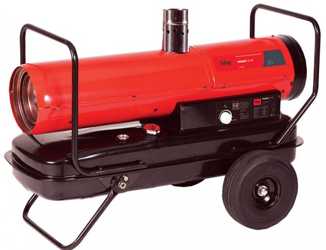 Когато се използва оръдие на дизелово гориво, е необходимо да се използва захранваща и изпускателна вентилация, ако има такава, ако не, тогава е по-добре да се направи, за да не се отрови от продуктите от горенето. Можете да използвате дизелово оръдие с непряко нагряване, такива опции са ефективни, тъй като поради техния дизайн горивото напълно изгаря и топлината преминава през специален топлообменник. Остатъчните продукти от горенето се изхвърлят навън през специална тръба.