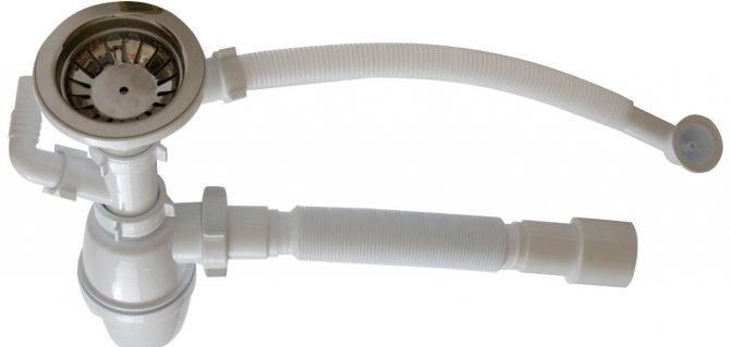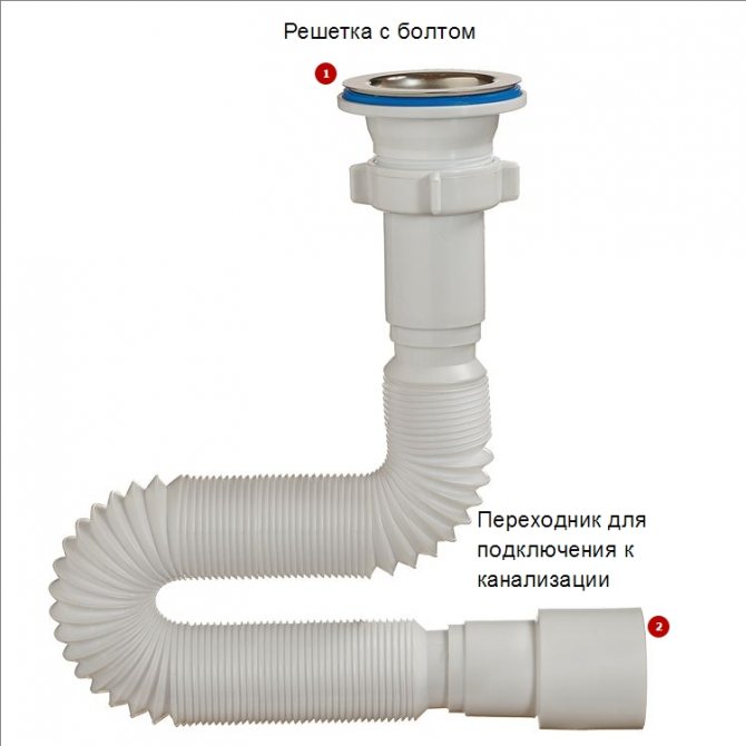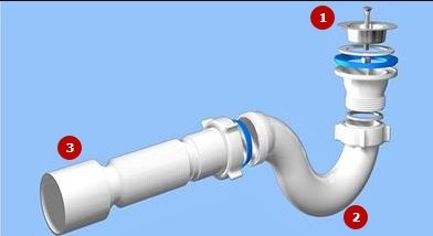 - уред за източване на течността. Трябва да се монтира директно в мивката.
