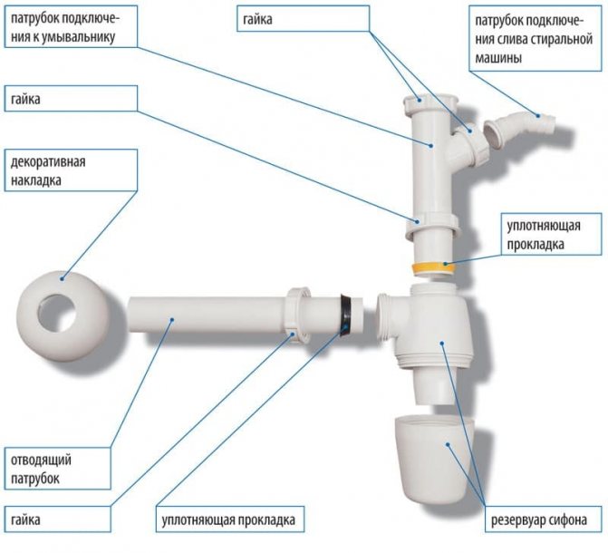Сифоните, инсталирани под мивката, могат да бъдат оборудвани със следните аксесоари: