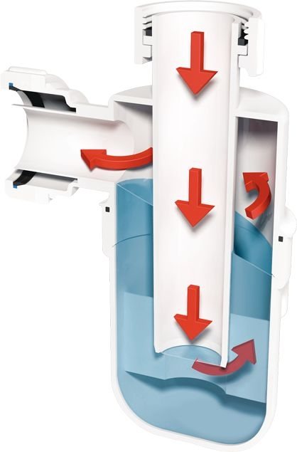 Газовете, изтичащи по време на изхвърлянето на отпадъчни води, не могат да го преодолеят, което означава, че не проникват в жилищните помещения. Тази тапа за вода изобщо не пречи на източването. Някои водопроводни инсталации са оборудвани със собствена система за хидроизолация, всички останали трябва да бъдат инсталирани отделно.