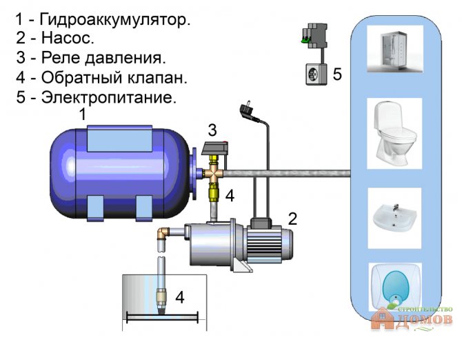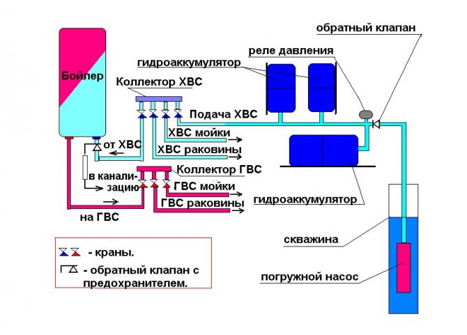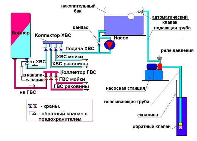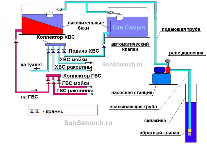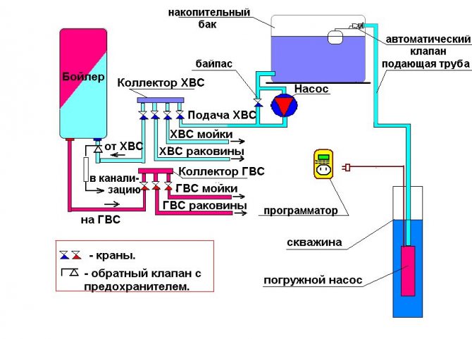 Схема за водоснабдяване на частна къща с резервоар за съхранение: